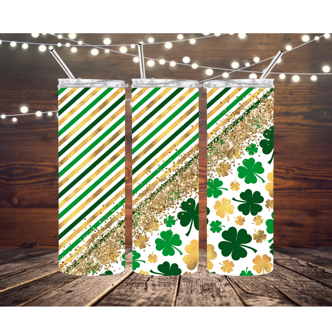 Wholesale 🤩 Hustle & Heart NC St. Patrick’s Day Shamrocks And Stripes St Patricks Day 20oz Skinny Tumbler 😀