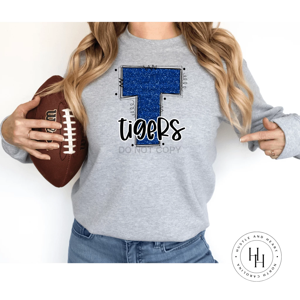 Budget 👍 Hustle & Heart NC Tigers Blue Glitter Varsity Doodle School Doodle Designs 💯