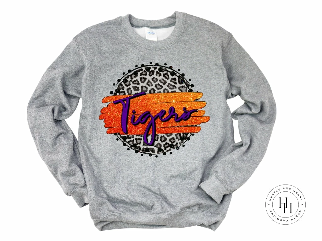 Best deal 🤩 Hustle & Heart NC Tigers Blue Graphic Tee Faux Glitter Leopard Circle Designs 🌟