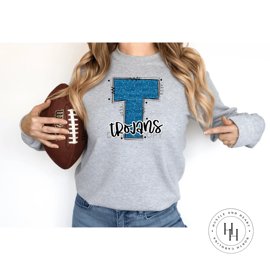 Brand new ๐Ÿคฉ Hustle & Heart NC Trojans Carolina Blue Glitter Varsity Doodle School Doodle Designs ๐Ÿ˜‰