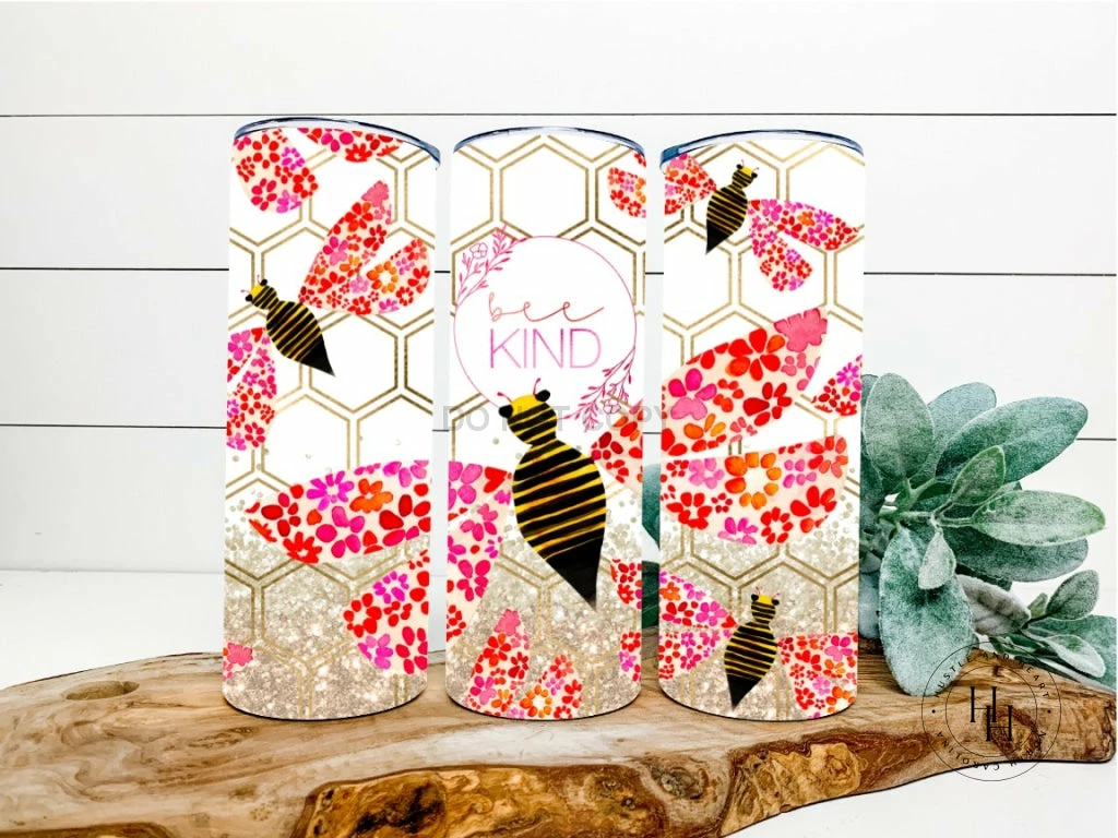 Hustle & Heart NC Tumbler Of The Week Bee Kind Completed 20oz Skinny Tumbler