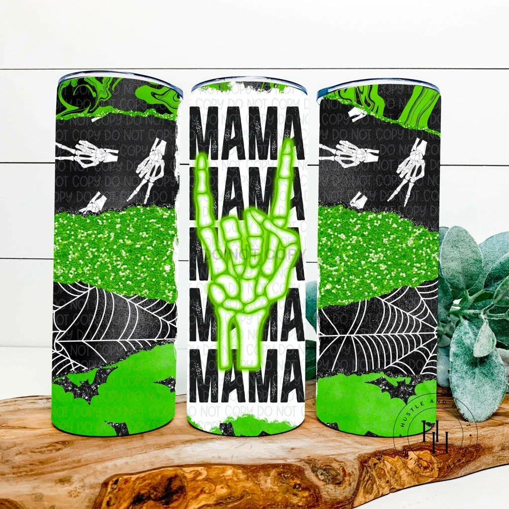 Coupon 🛒 Hustle & Heart NC Tumbler Of The Week Mama Neon Green Skeleton Completed 20oz Skinny Tumbler 🤩
