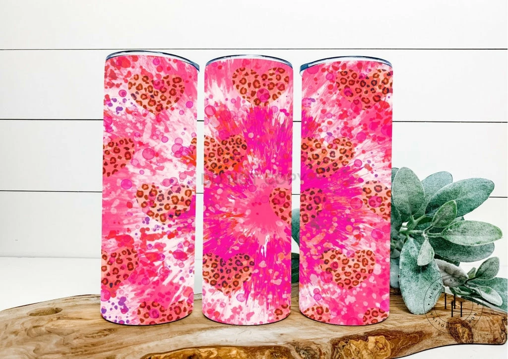Hustle & Heart NC Tumbler Of The Week Pink Leopard Heart Completed 20oz Skinny Tumbler