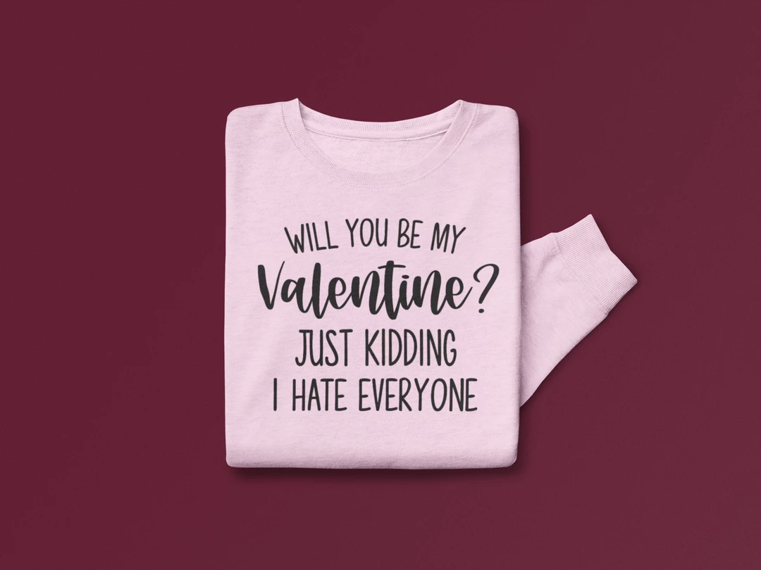 Best Sale ๐Ÿ˜‰ Hustle & Heart NC Will You Be My Valentine? Just Kidding I Hate Everyone Valentine’s Day Graphic Sweatshirt ๐Ÿฅฐ